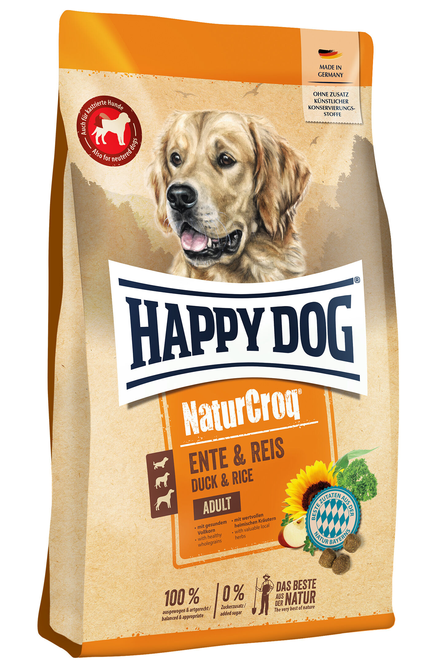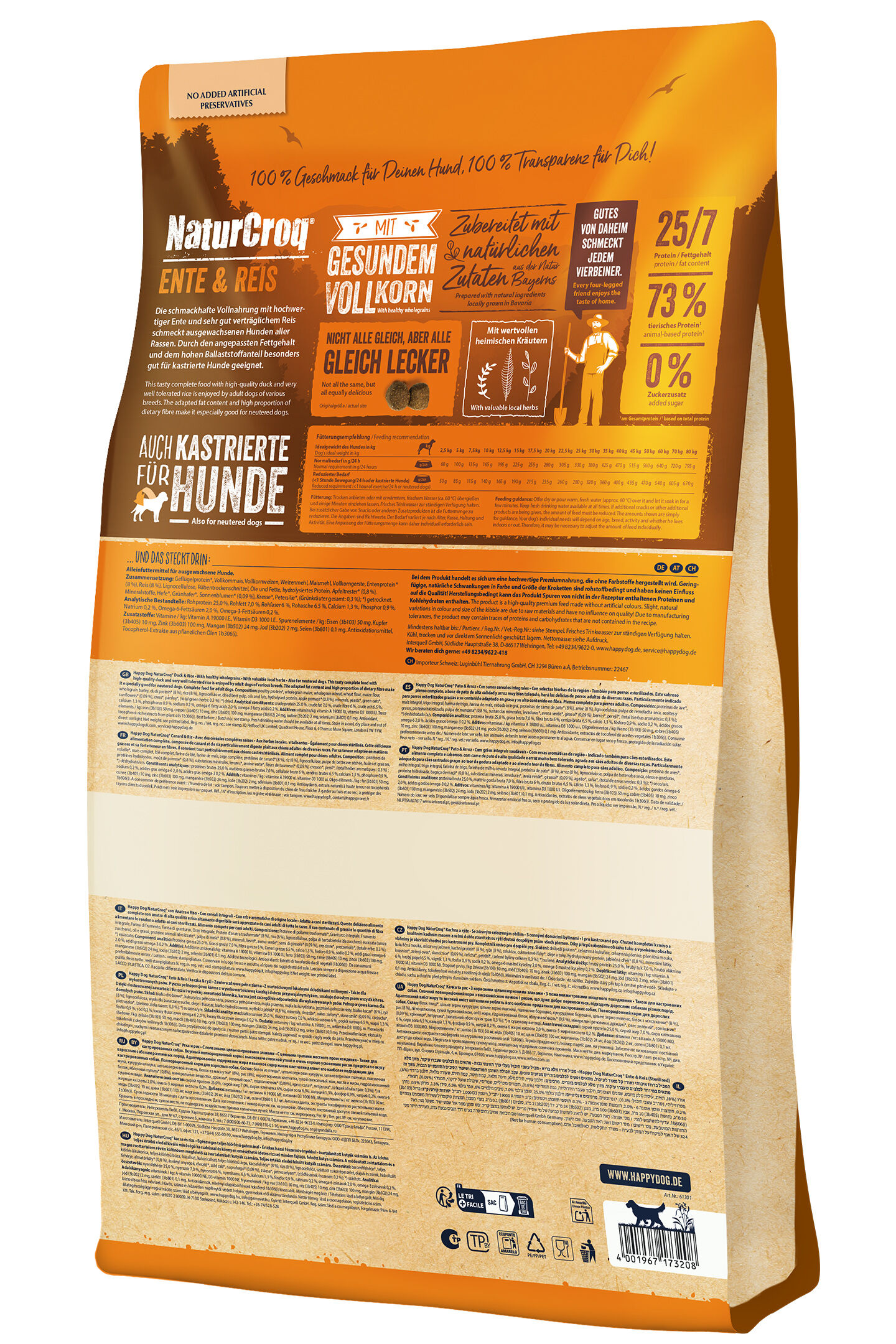 Ausgewogene Naturkost für ausgewachsene Hunde mit Ente und Reis